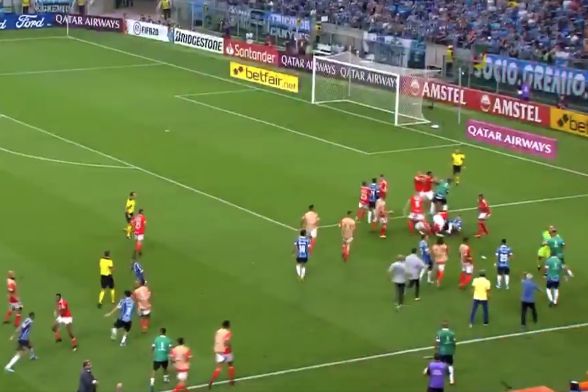 A pochi minuti dalla fine del derby tra Gremio e Internacional in Copa Libertadores si è accesa una gran rissa: è finita con otto espulsioni.